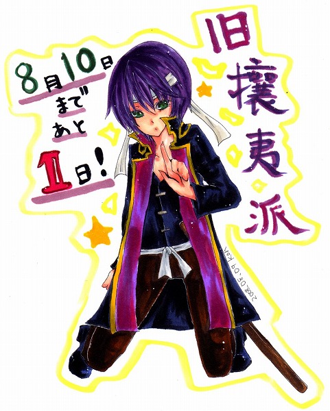 「俺は・・・・また何も護れなかった・・・・・ッ」 久々にパソコンで・・・saiの有効期限が切れつつ頑張りました。買えよ! なんか自分のノートパソコンでしかペンタブが言うこと聞いてくれないので本当に久しぶりです。 そして厚塗りとか目指したんですが結局あれ?^^^^^ムリでした。すいません。 ついでに背景と文字と顔の影無しverを追記においてあります。あと原寸大と。